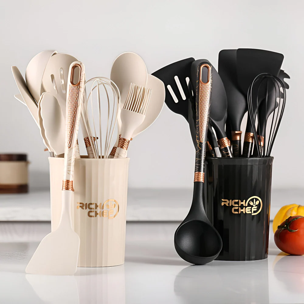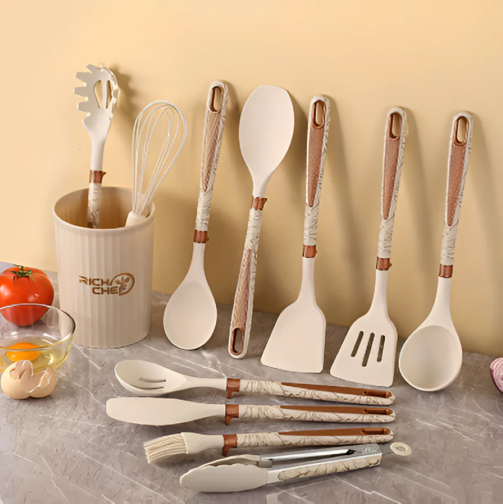 Köksredskapsset + Silikonhuvuden, Non-stick, Värmebeständiga.