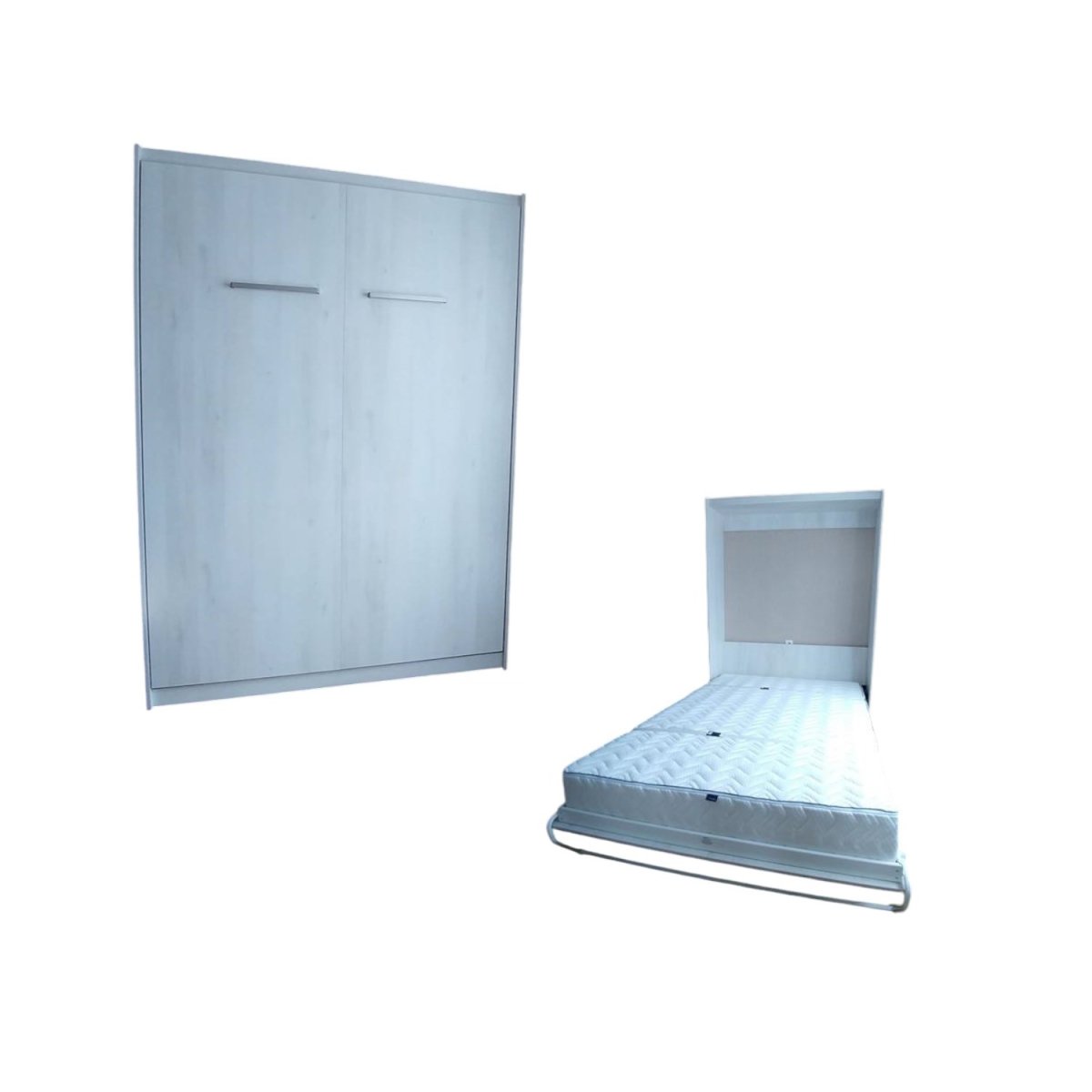 140 stående sängskåp anpassat för en lös madrass. Detta sängskåp tillverkas med en tjock och stabil topp-platta. Skåpet har tjock och tålig kantlist som håller för hårt slitage. Sängskåpet har ett fjädersystem som drar upp luckan så att det blir lätt och smidigt att fälla upp och ner.