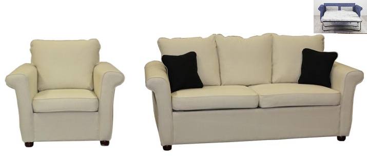 Modell: framåtbäddad 3-sitssoffa och en fåtölj.