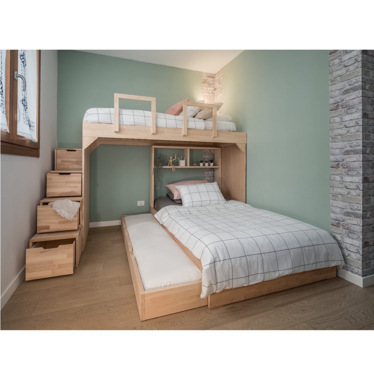 Sängramen levereras komplett med en botten till dom båda sängarna.