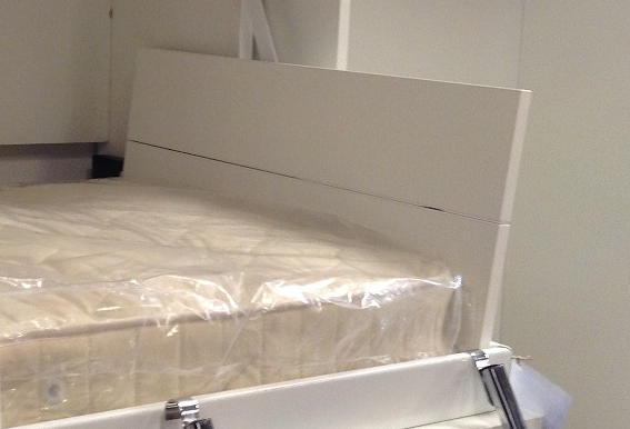 Sängskåpet tillverkas i Litauen och kommer omonterat i stora delar.