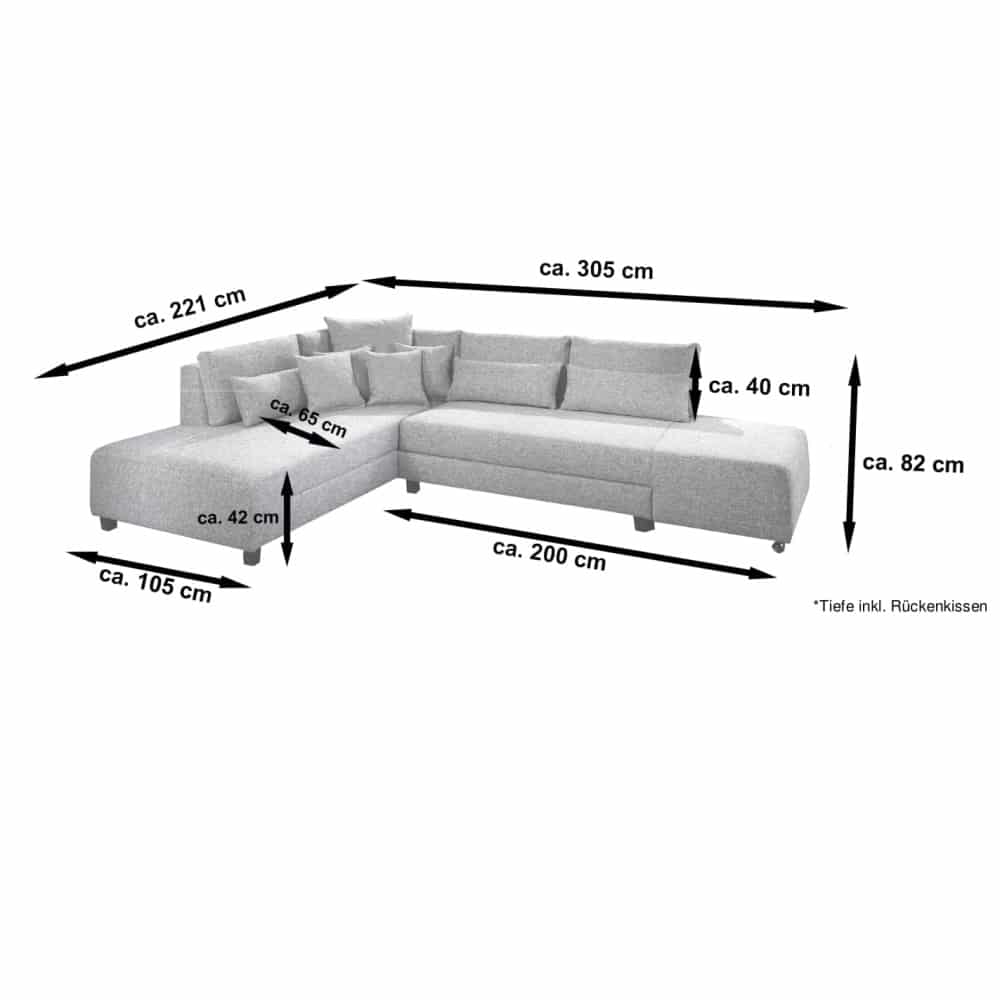 Mått: Längd 221x305cm /305x221cm Djup 82 / 105cm Sitthöjd 42cm sittdjup 65cm