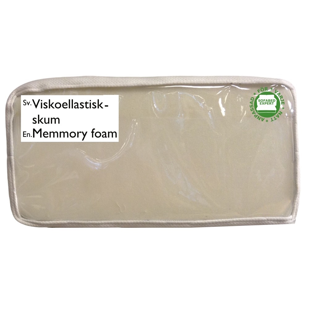SV En tjockare skum madrass med ett lager viscoellastisk skum på toppen och en fast skum madrass på botten.