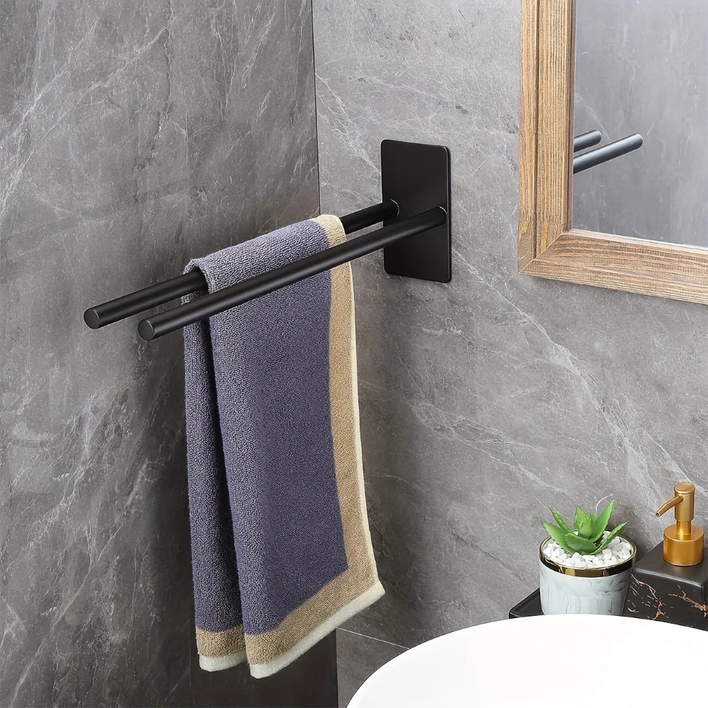 Dubbel Handdukshållare: Robust Rostfritt Stål, Matt Svart & Borstat Silver.