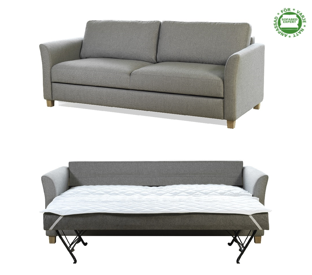Exceptionellt bra sitt- och liggkomfort. Lagringsutrymme för sängkläder. Levereras med madrasskydd.