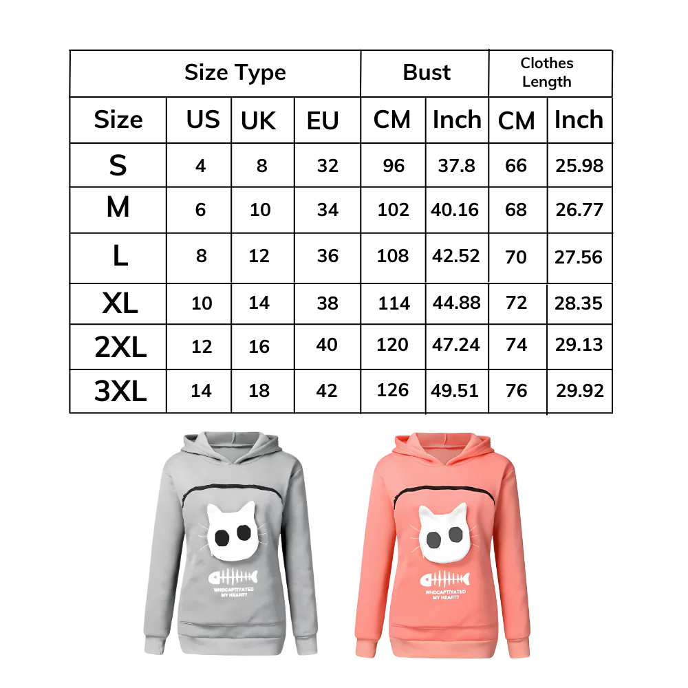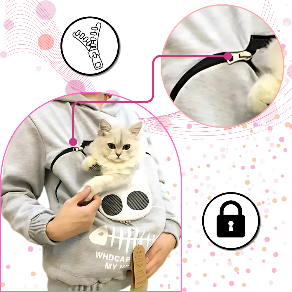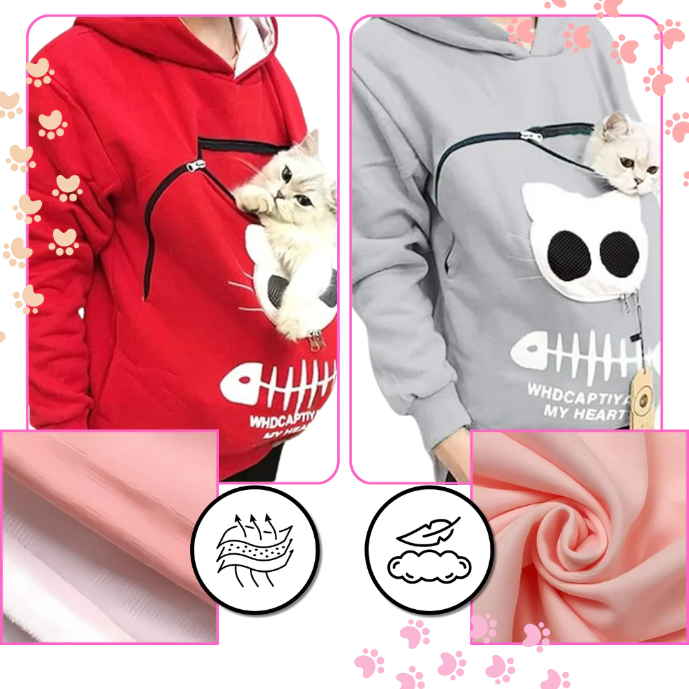 Tröjan som förbättrar relationen till ditt husdjur är den perfekta blandningen av komfort och stil och erbjuder en mysig, pälsfodrad påse som ditt husdjur kan gosa i samtidigt som du ser snygg och funktionell ut för daglig användning.