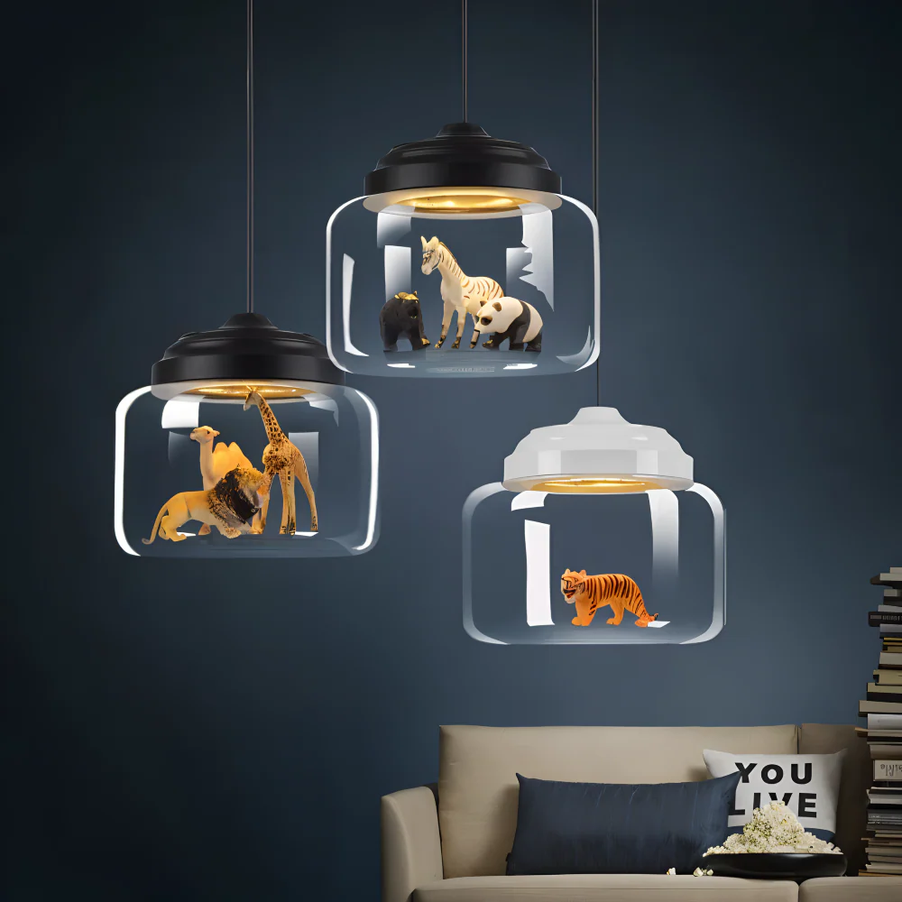 Zoo Glas Pendellampa – Dekorativ Nordisk Tecknad Djur LED Hänglampa